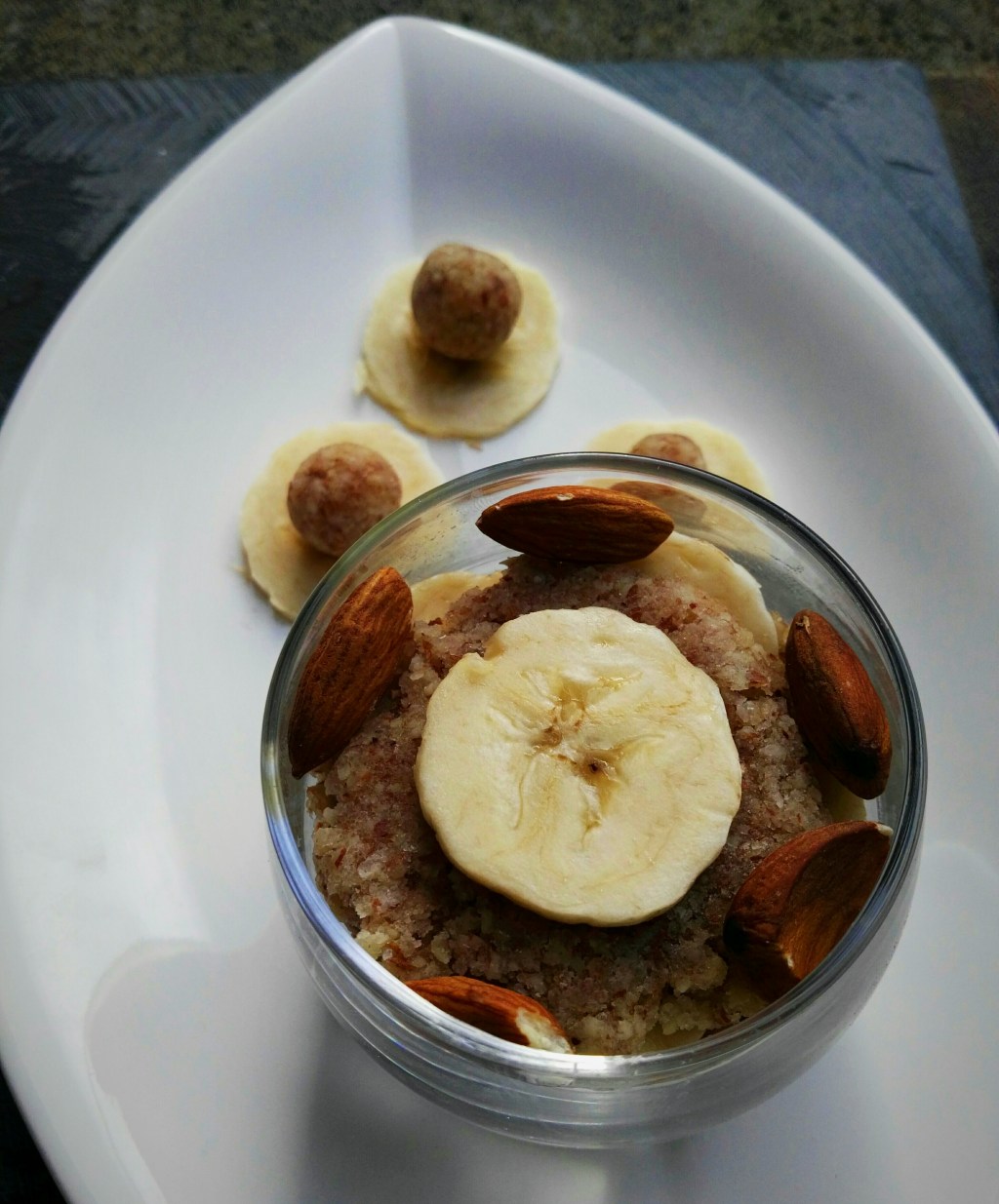 - Nun kann das Mandelkonfekt in die gewünschte Form gebracht werden – wir entschieden uns dazu, aus der Mandelmasse mundgerechte Dessertbällchen zu machen.