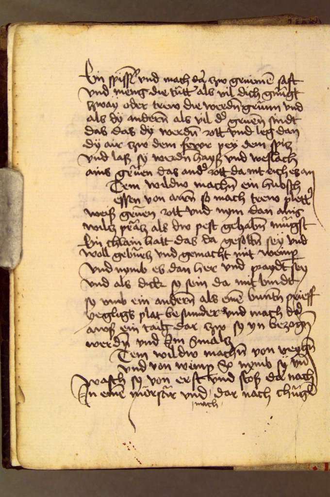 [I]Tem will dw machen von veygen vnd von weinper so nymb sye vnd wasch sy von erst vnd stoes dar nach in einem moersaer vnd mach dar nach chueglen dar aus geleich als air vnd mach dar nach ein taiglin an mit wein vnd gilb das taigel vnd thue die chuegel dar ein vnd pachgs dar nach in oel oder in smalcz vnd gbuercz sye von ersten etc.