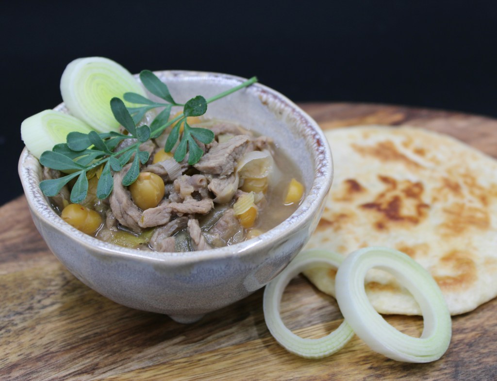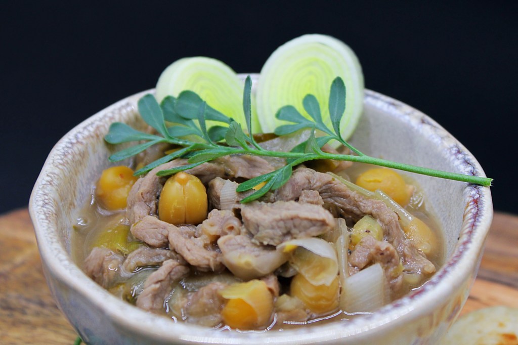 - Noch einige Minuten weiterköcheln lassen. Das Gericht ist fertig, wenn Fleisch und Kichererbsen so weichgekocht sind, dass sie fast zerfallen.