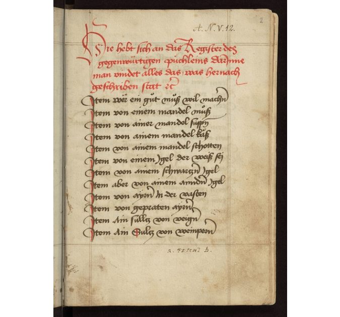 Im Folgenden findet ihr drei beispielhafte Rezepte aus dem Kochbuch des Meister Hanns zu Wirtenberg, einer Rezeptsammlung, die um 1460 erstellt wurde und heute an der Universitätsbibliothek Basel aufbewahrt wird. Nähere Informationen zum Codex sowie eine Edition aller enthaltenen Rezepte bietet das Projekt CoReMa: Kochbuch des Meister Hanns.