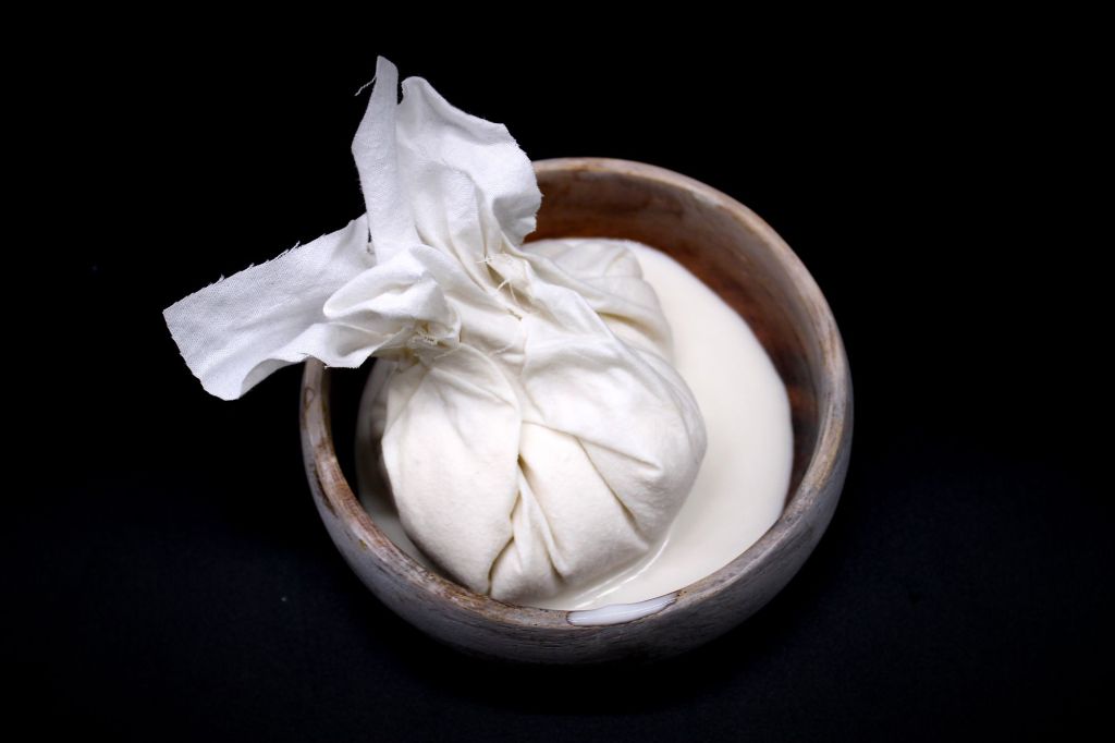 Danach gieße es durch ein reines Tuch ab und wringe das Tuch aus und passiere es und das, was durchpassiert wird, wird die Milch.