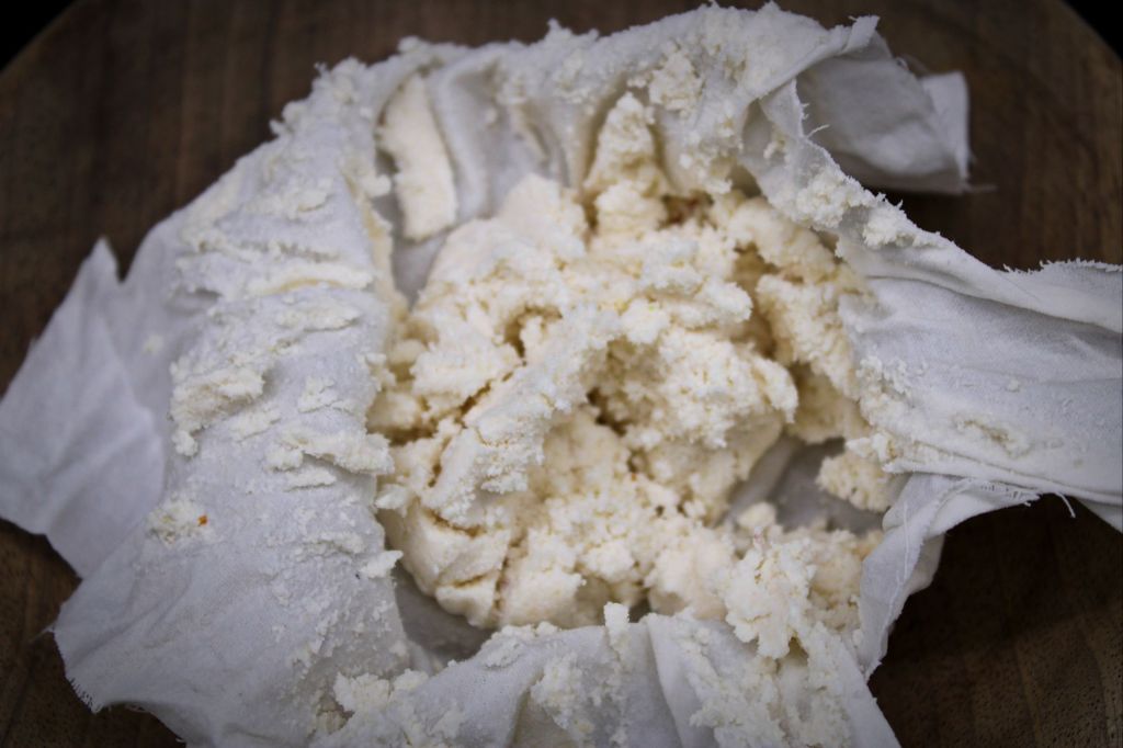 Während das obere Rezept für eine Art Frischkäse mit Salz und etwas Wein oder Essig ohne weitere Zutaten auskommt, wird für die Herstellung eines „Schafkäse-Imitats“ fein gesiebtes Reismehl mit der Mandelmasse aufgekocht, bis diese eindickt: